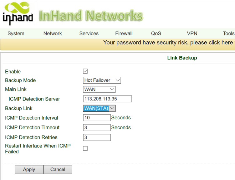 3) Go toNetwork >>Link Backup, set WAN as main link and WAN(STA) as backup link.