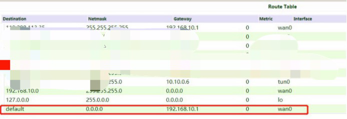 5) Test and Verify. Disconnect the wired cable.Check Status >> Route Table, and the default route has changed to WAN(STA).