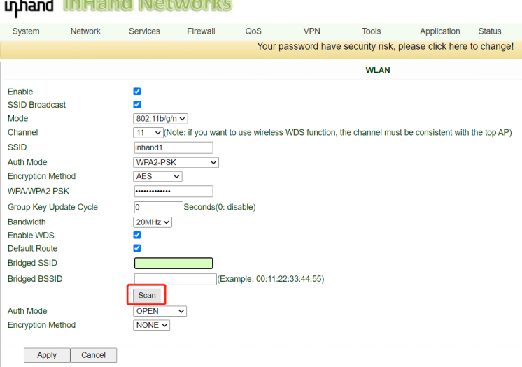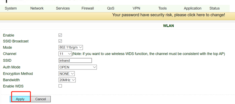 1) Select AP mode. Go to Network-> Switch WLAN Mode. The default mode of WLAN is AP. After the switch of mode, it needs a reboot to take effect.