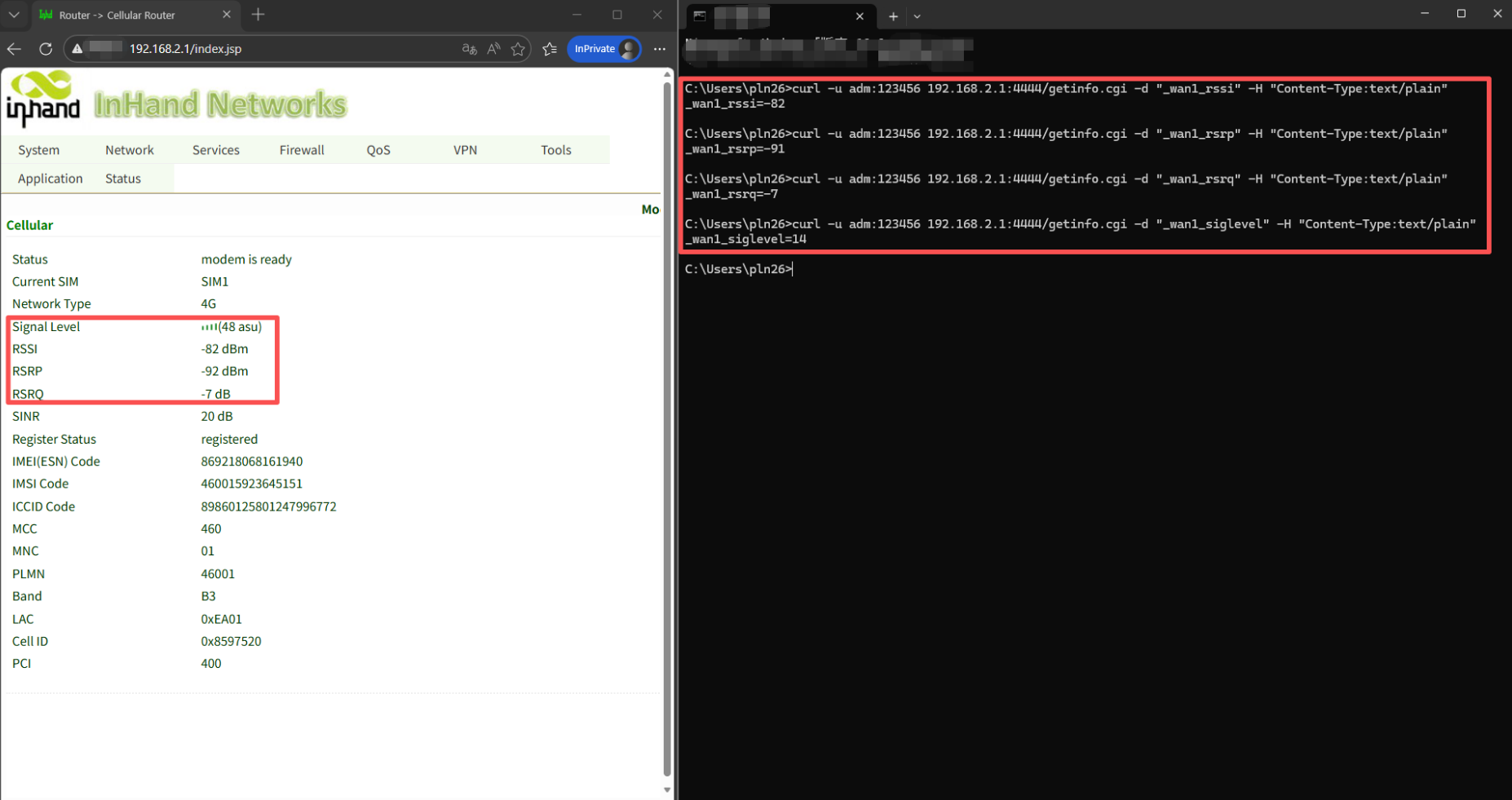 curl -u adm:123456 192.168.2.1:4444/getinfo.cgi -d "_wan1_rsrp" -H "Content-Type:text/plain"