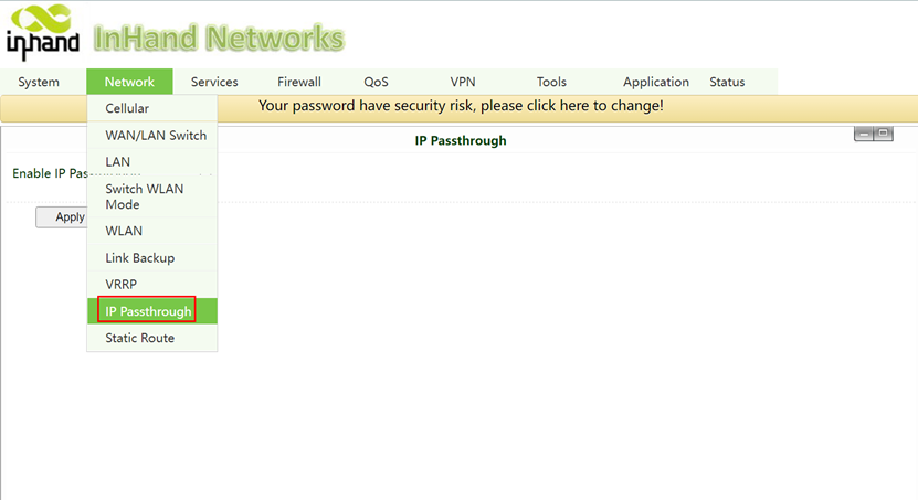 Background: IP Passthrough allows the router to act as a bridge, passing the IP address it receives from the carrier to one attached device. Once the router is in IP Passthrough mode, using the IP will only reach the end device and remote access to the router can only be achieved through one of our cloud platforms. This feature is useful for allowing remote connections to a device connected to the router.