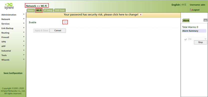 2. Go to NetworkàWi-Fi, and check the Enable.