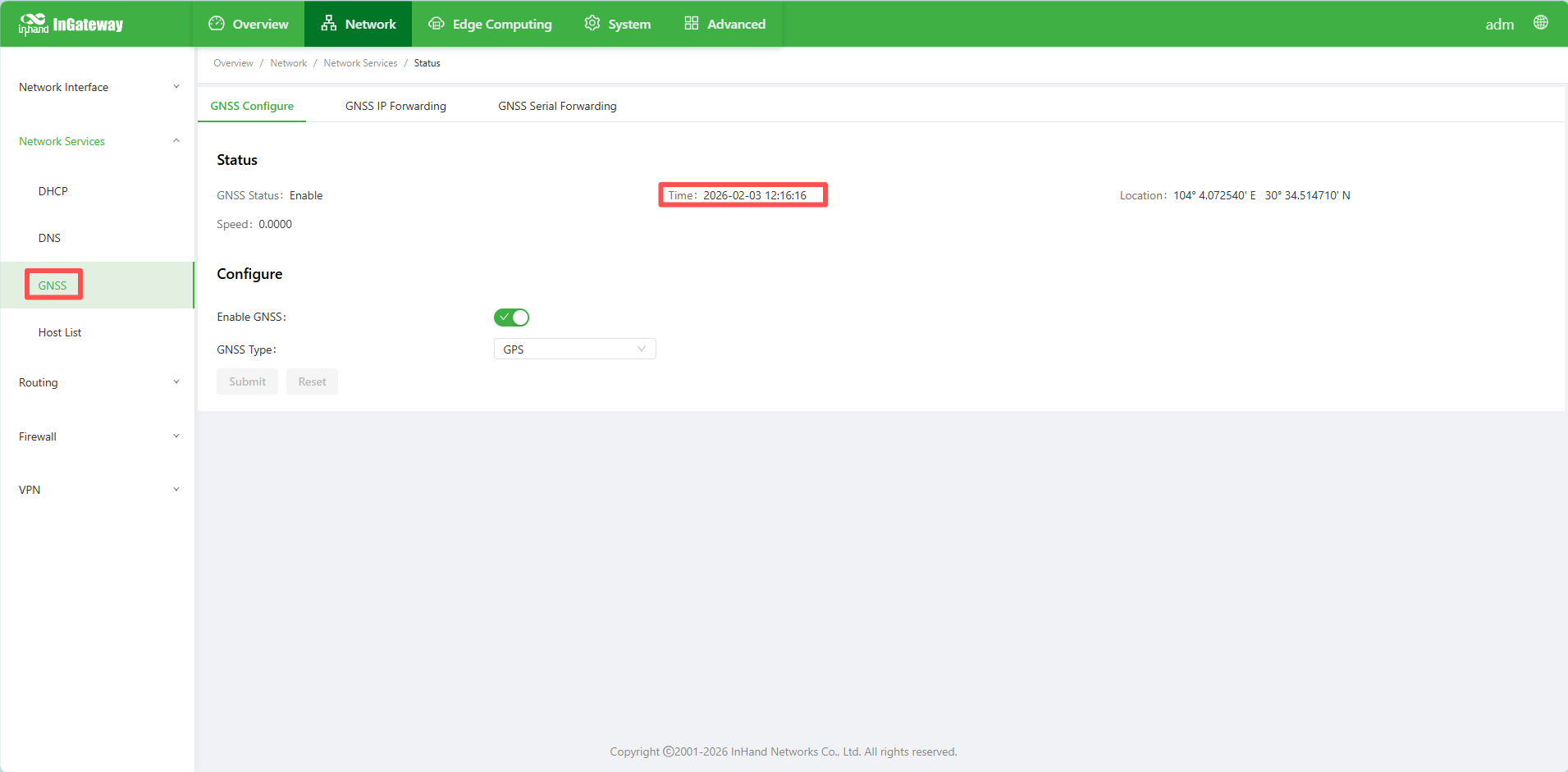 When you enabled the GNSS and get the time, IG will automatically synchronize with it.