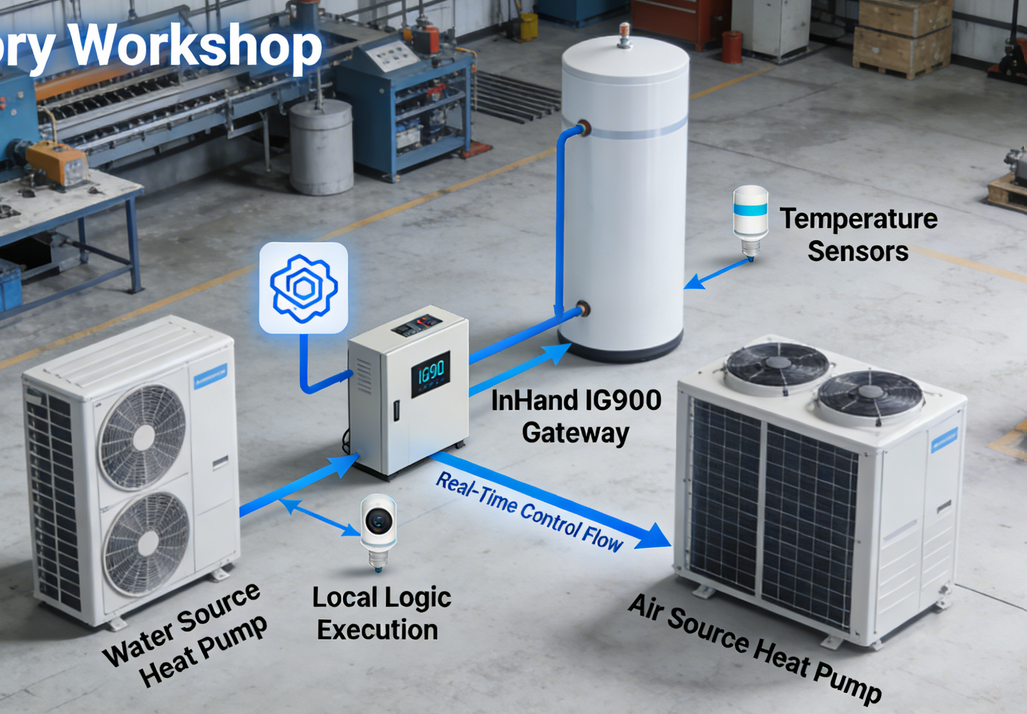 InHand IG900 Intelligent Edge Gateway — supports on-site edge computing, real-time data collection, and local logic execution, enabling autonomous heating control without relying on remote platforms.