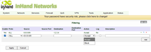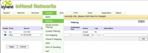 the previous step, by navigating to Firewall -> Filtering
