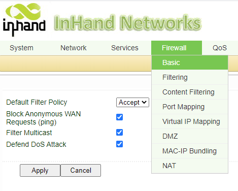 2.2 Navigate to Firewall->Basic. Check Block Anonymous WAN Requests (ping) as well as filter multicast and defend DoS Attack, these will help protect user against attacks as well as keep data usage low.