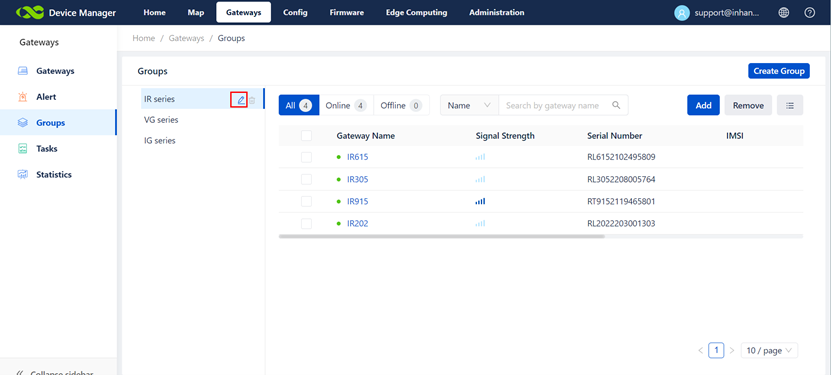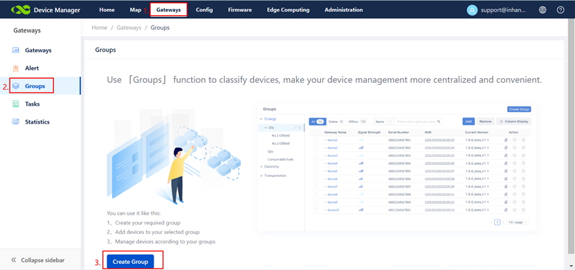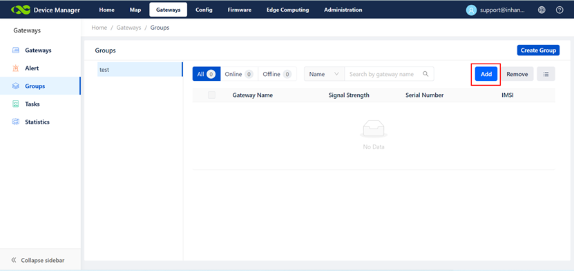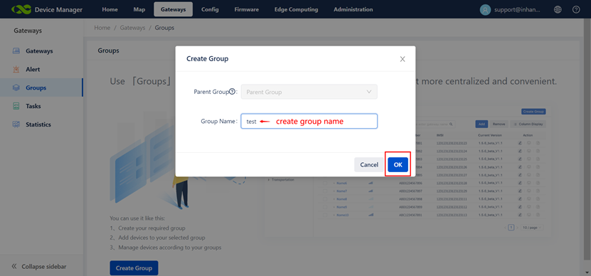 to GatewaysàGroupsàCreate Group.