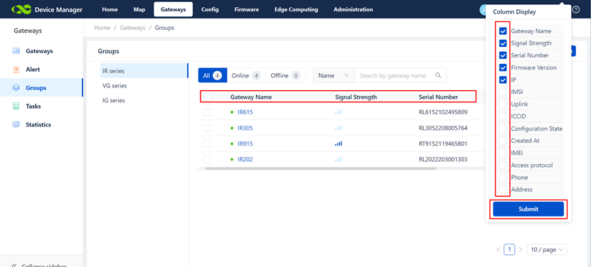 5. How to change the Column Display of deives?