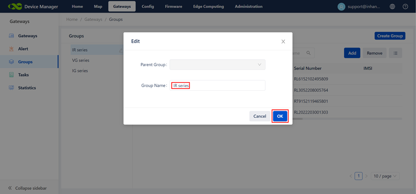 Edit the name of group and click the “OK”.