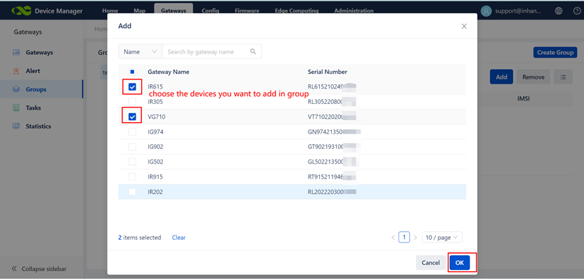 Choose the devices you want to add in group, and click “OK”. And they will be