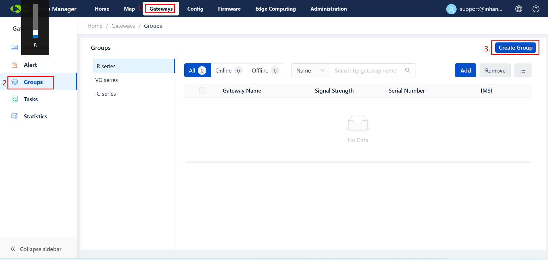 you already have a group or some groups, go to GatewaysàGroups, you can click the button “Create