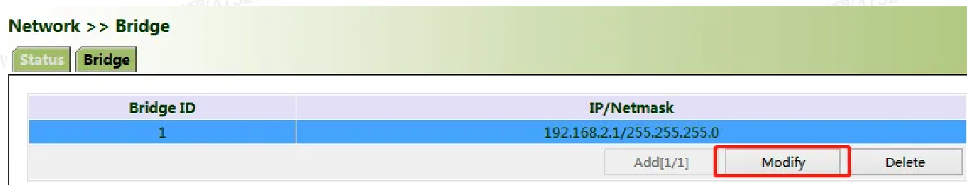 1. Click "Network >> Bridge" and select "Bridge >> Modify".