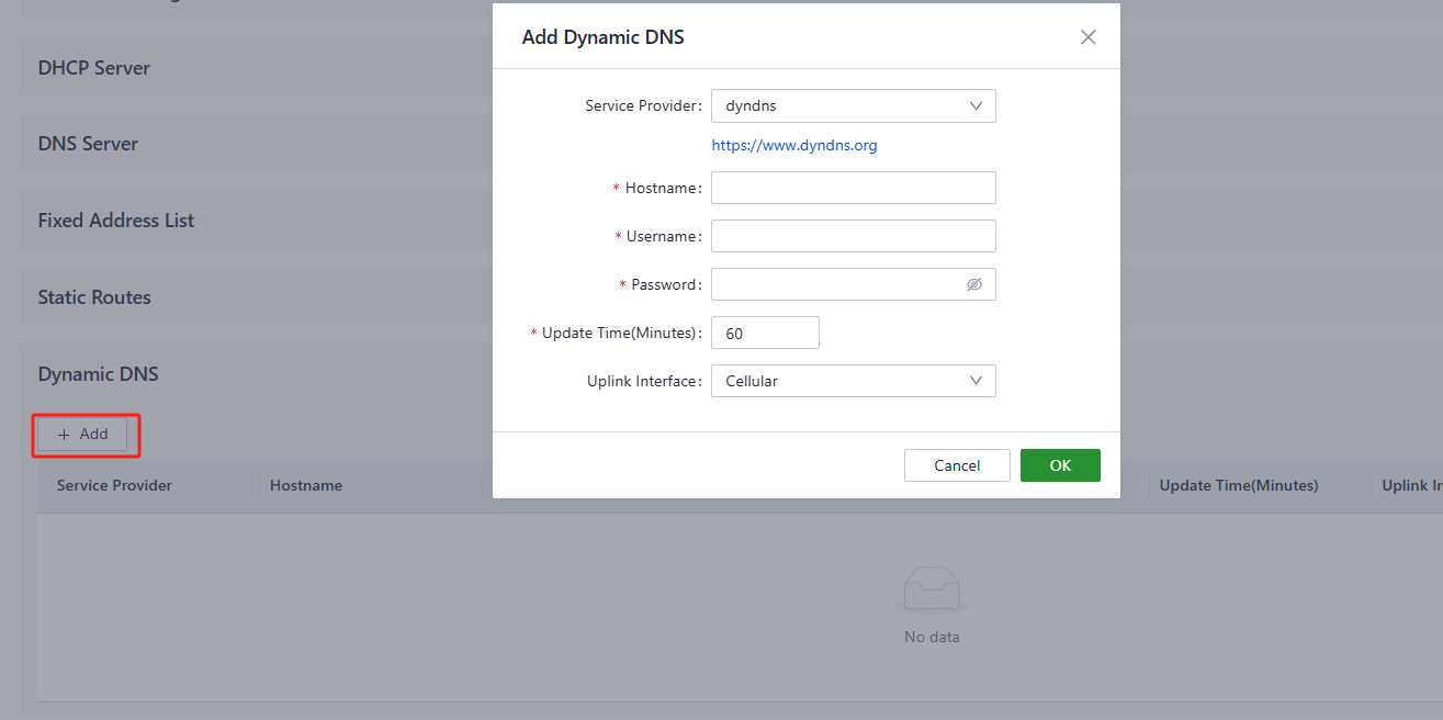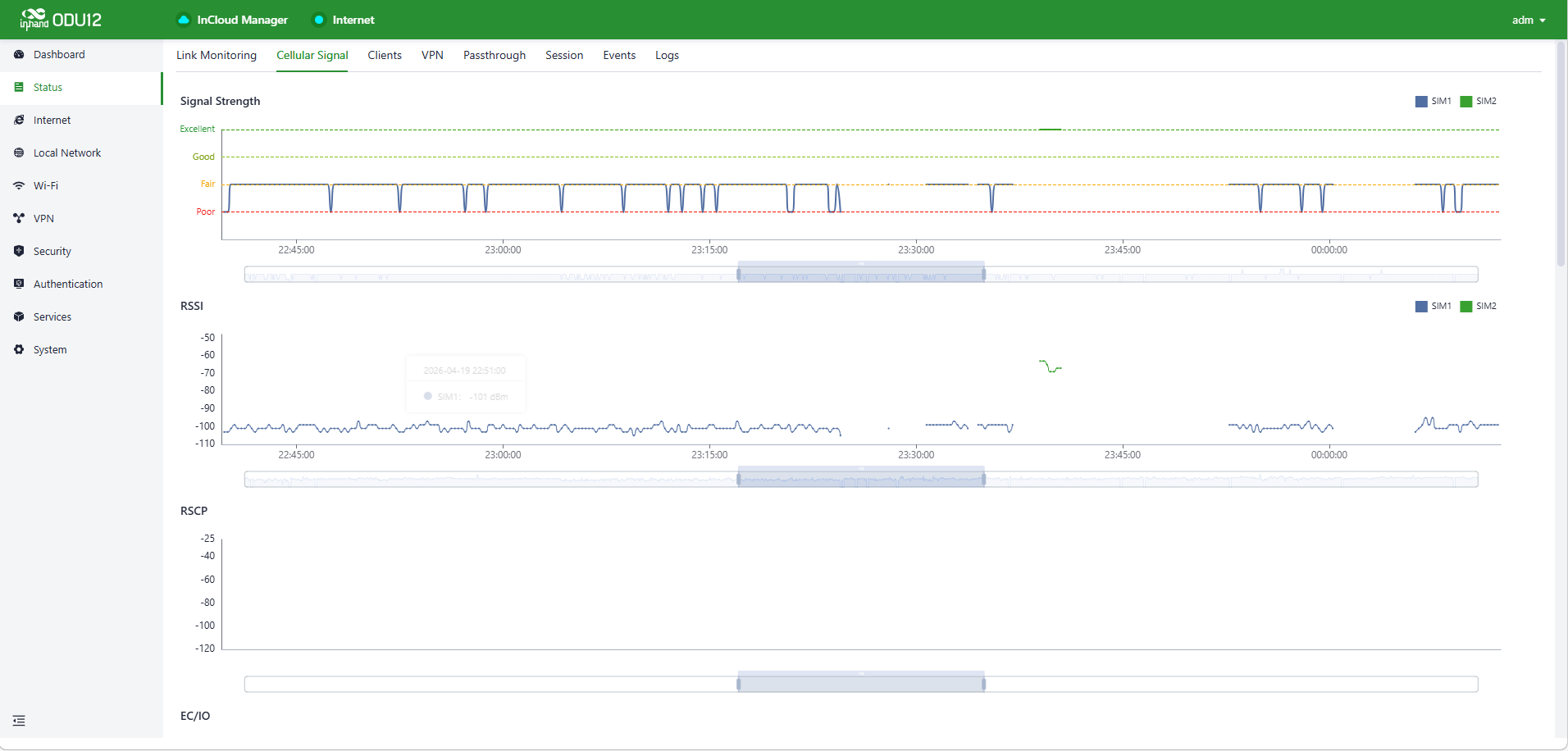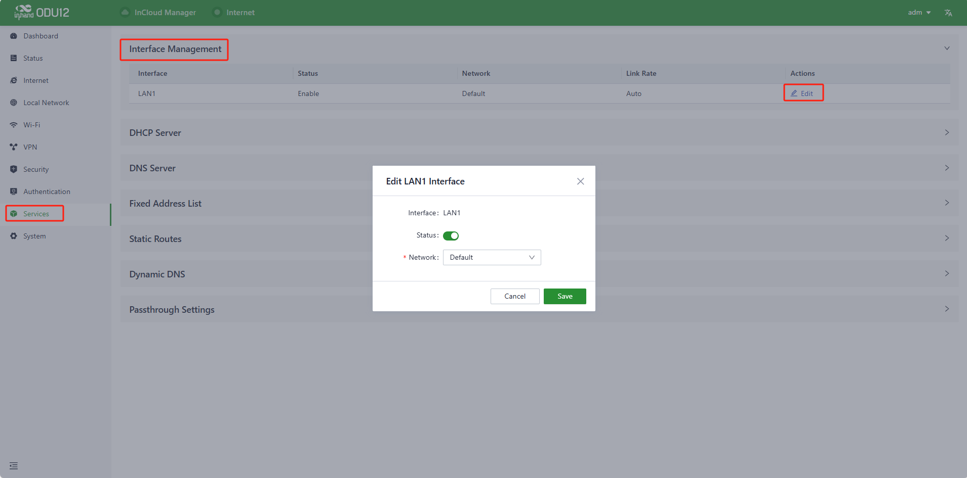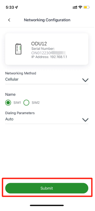 Step 5: If ODU cannot connect to a network, click "Internet" on the left navigation bar, and click the edit button behind the "Cellular" or “WAN” to set up network parameters. The device enables the dial-up function and WAN by default, please wait for a few minutes to go online, and re-enable the dial-up if it is not dialled.