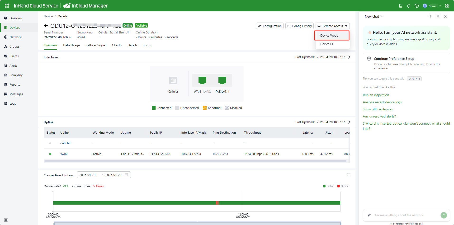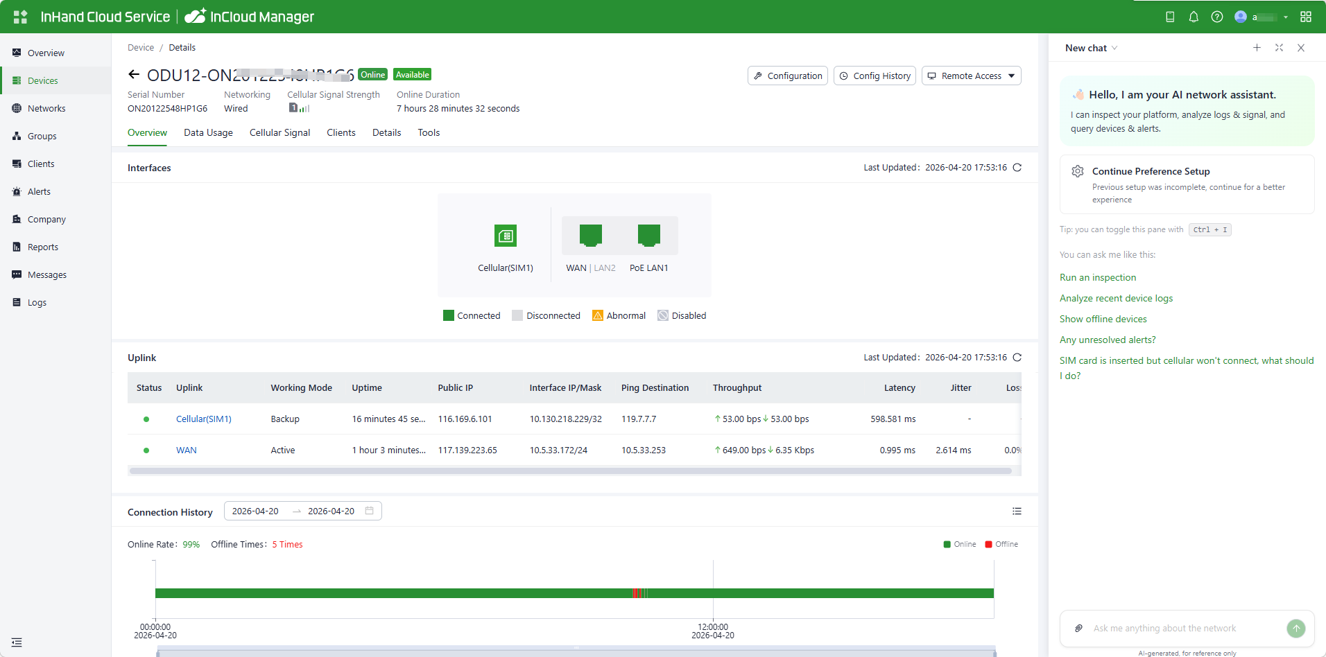 InHand Networks has been committed to providing high-quality network services for small and medium-sized chain organizations. When users utilize the cloud platform services, they are required to purchase licenses for each device to access the extensive cloud-based features.