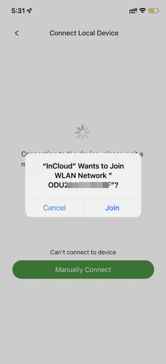 Step 4: If ODU cannot connect to the Internet, click "Configure local device" on the [Device] page, scan the QR code on the device again and then configure the device to connect to the Internet. Mobile phones will connect to ODU’s Wi-Fi after scanning the QR code in "Configure local device".