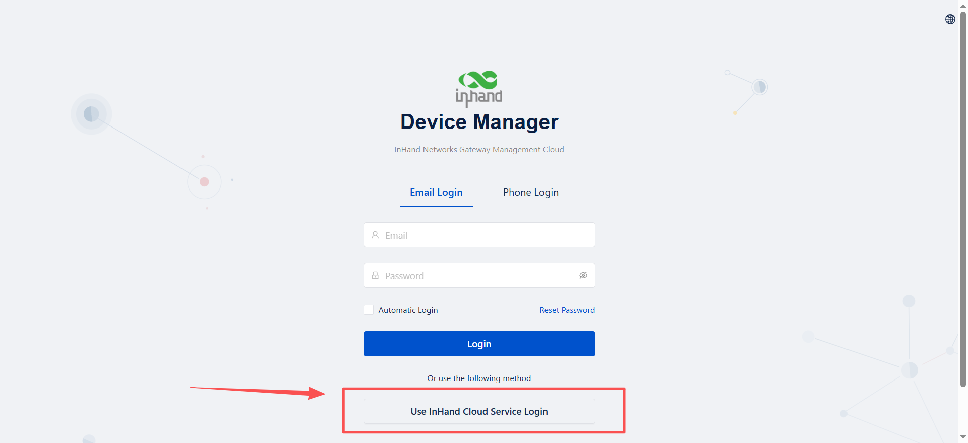 Method 2: Log in to Device Manager or InConnect using InHand Cloud Service Credentials