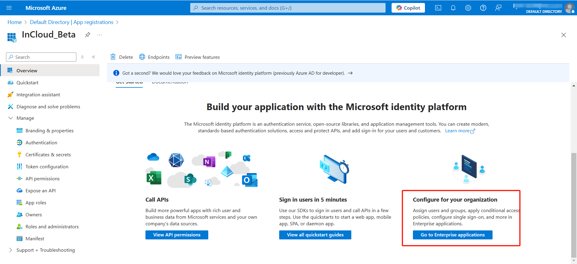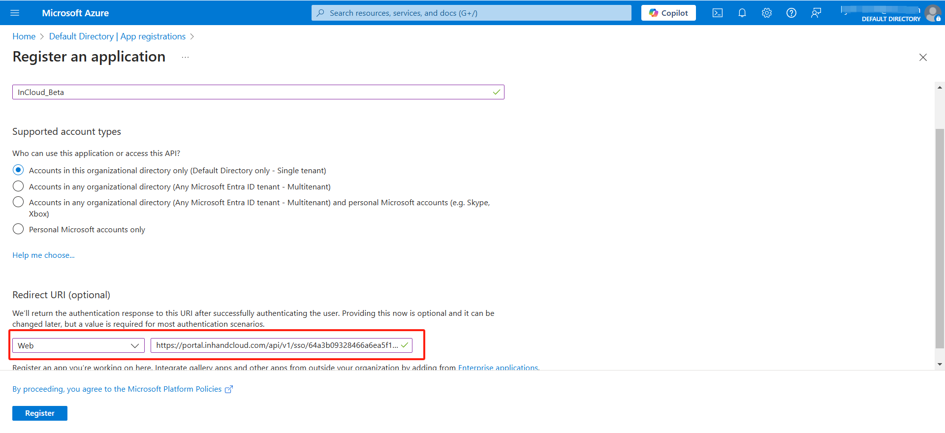 a. A customized application name, for example, InCloud_Beta.