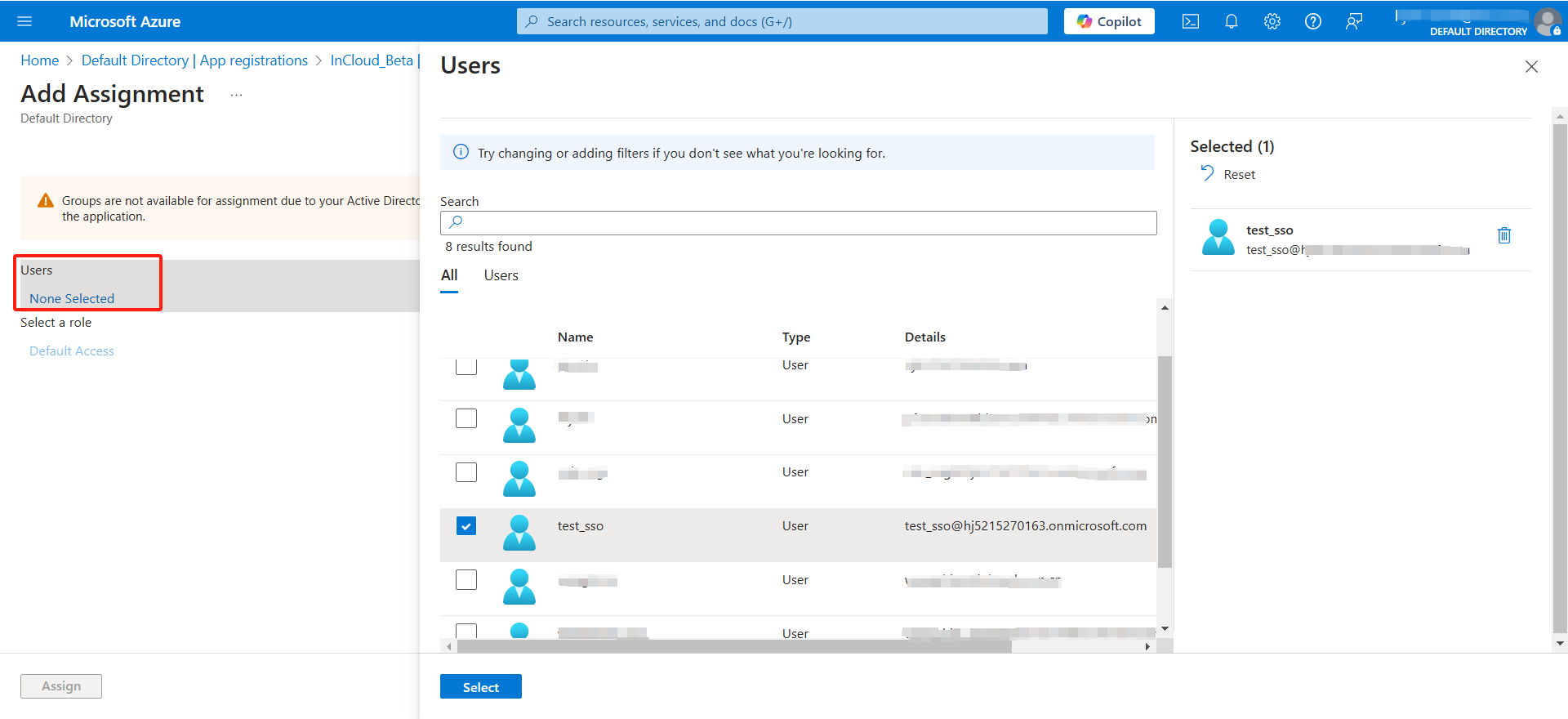 You have a corporate employee user (test_sso) in Azure AD, and you want the corporate employee user (test_sso) to be able to SSO directly to the InHand Cloud Service by logging in to Azure AD.