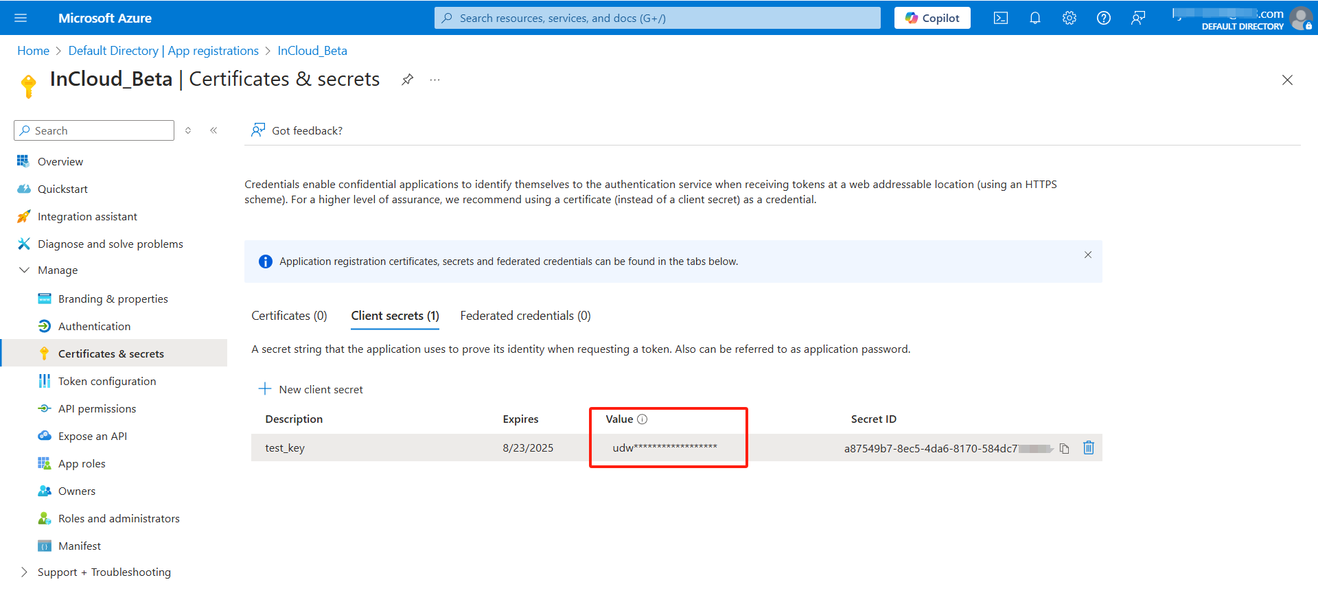 Note: The client secret generated in Azure AD has an expiration date, after the secret expires, the SSO function cannot be used, please create a new client secret in advance to replace it.