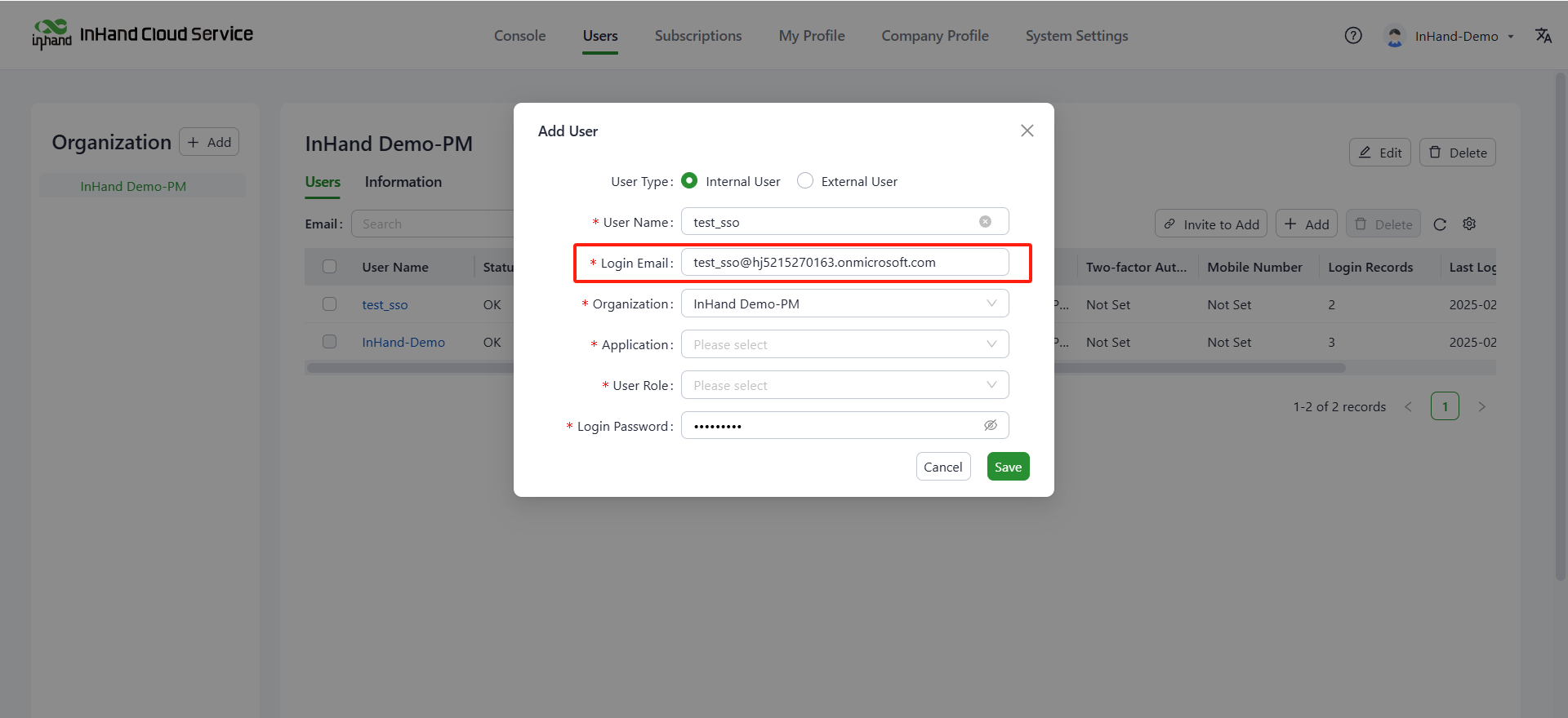 1. Go to the Users page of InHand Cloud Service.