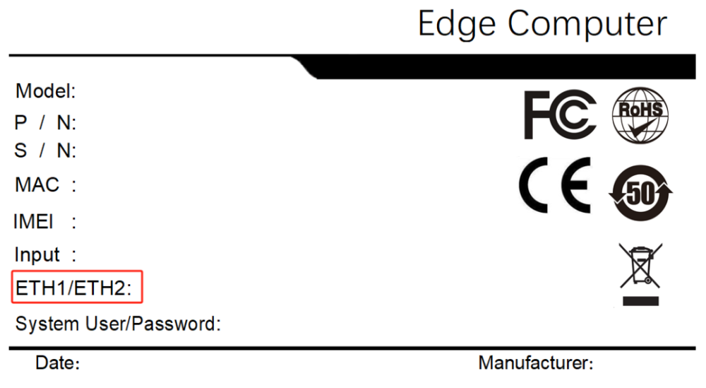 Connecting to the device using SSH requires ensuring that the device network is accessible. Check the nameplate on the bottom of the device to find the system default Ethernet address and configure the host and device to be on the same network segment.