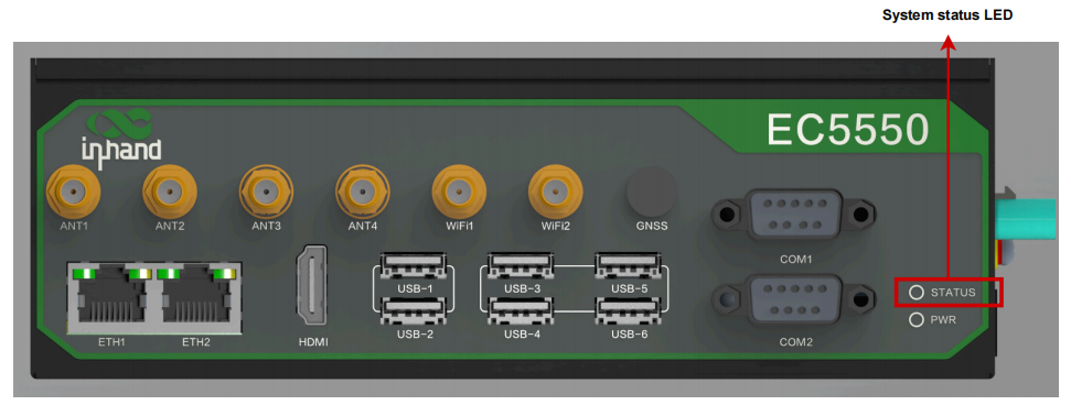 The front panel is equipped with a system status light (green LED), which indicates the system operation status. When the LED flashes (frequency 1Hz), it means that the system is operating normally, and the LED is off, which means that the system is not operating.