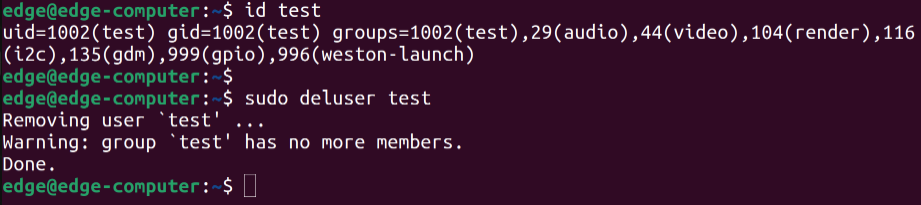 sudo adduser test Open the desktop Terminal or right-click and click "Open in Terminal", and enter the following command to delete the user, before deleting the user, please make sure the user exists, if you delete the user does not exist will prompt The user 'username' does not exist.