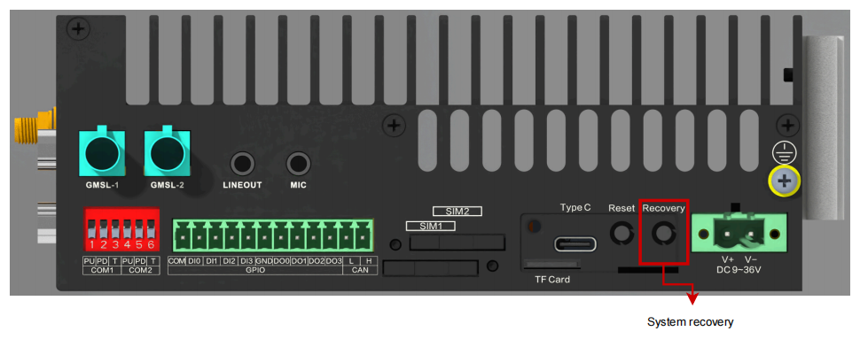 While the system is running normally, press and hold the Recovery button for 10 seconds until the system status LED changes from blinking to solid on, then release the button. The device will enter the system reset state and restore to factory default settings.