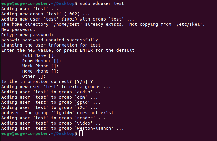 sudo ecversion -allOpen the desktop Terminal or right-click and select "Open in Terminal", and enter the following commands, according to the prompts to enter the password and user information, before creating the user, please make sure that the user exists, for the user that already exists, to create again will be prompted by The user 'username' already exists.