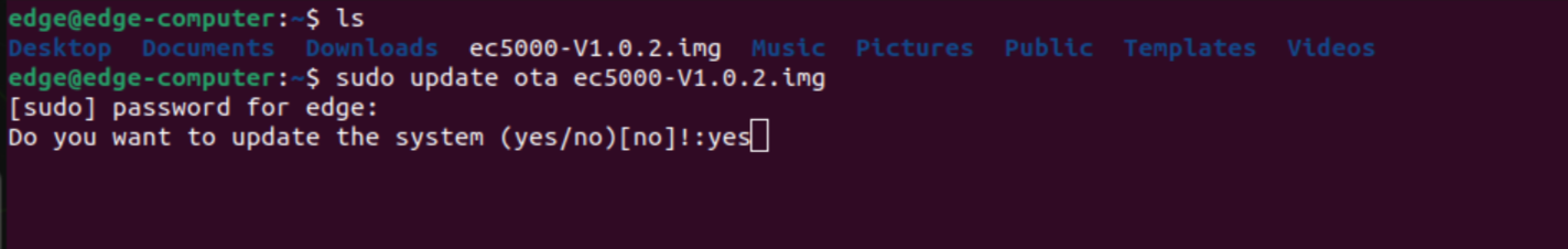 sudo update ota <update file>Open Terminal and use the update command to perform a system