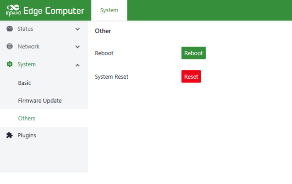 This page has 2 functions: restart system and reset system. Resetting the system needs to be used carefully. Resetting the system function will restore the system configuration status and file system status to the same as the factory, that is, the software installed by the user will also be cleared.