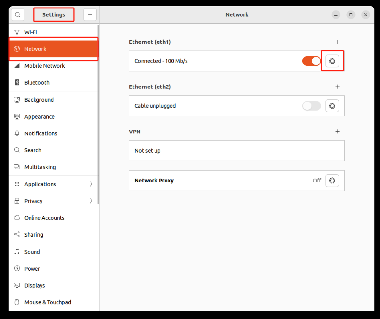 https://127.0.0.1:9100 to log in, or access the device configuration page through an external network.https://192.168.4.100:9100Configure a static IP address for the eth1 interface