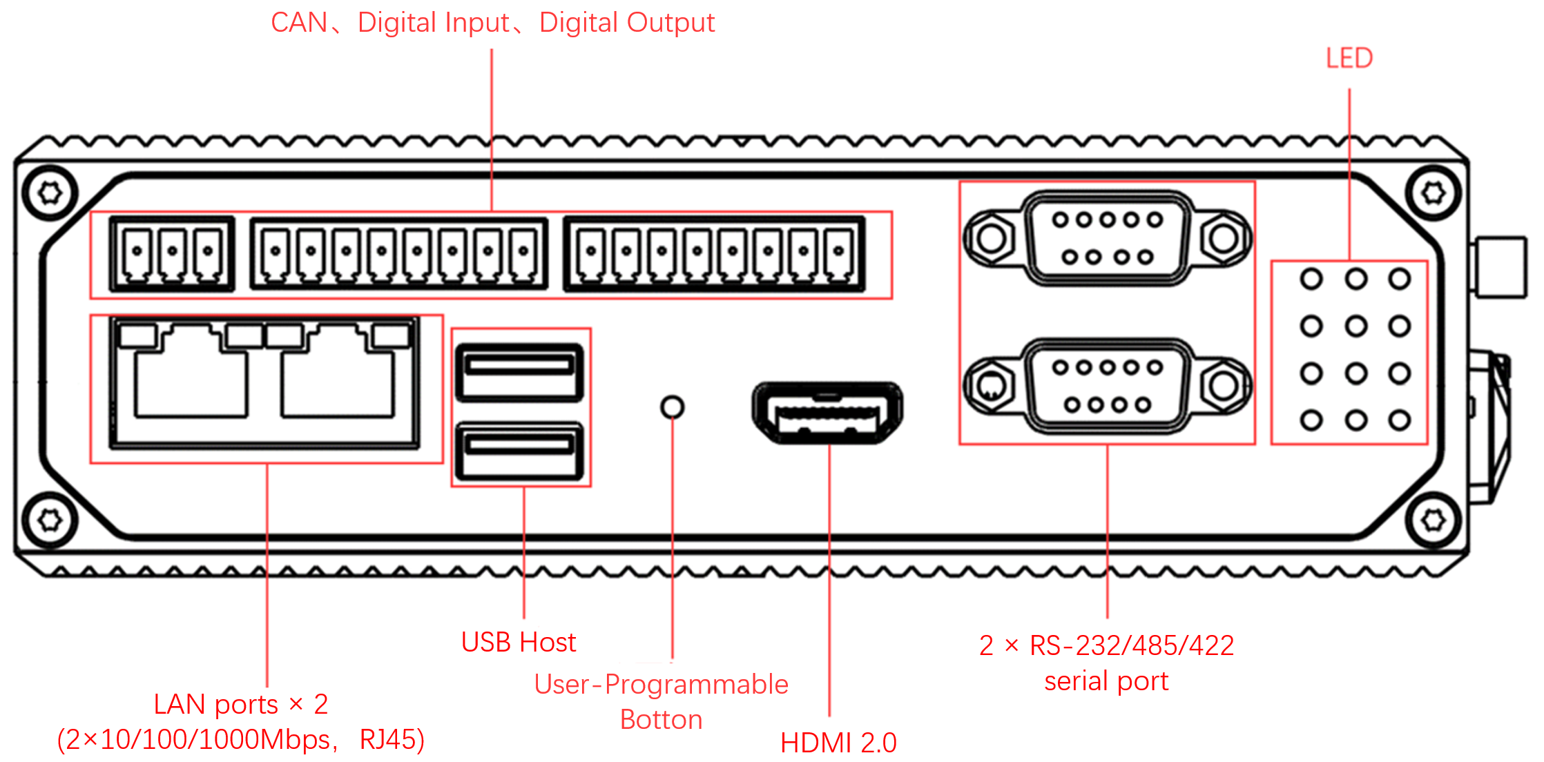 EC942 has 12 LED lights that respectively indicate the power supply and system operation status.