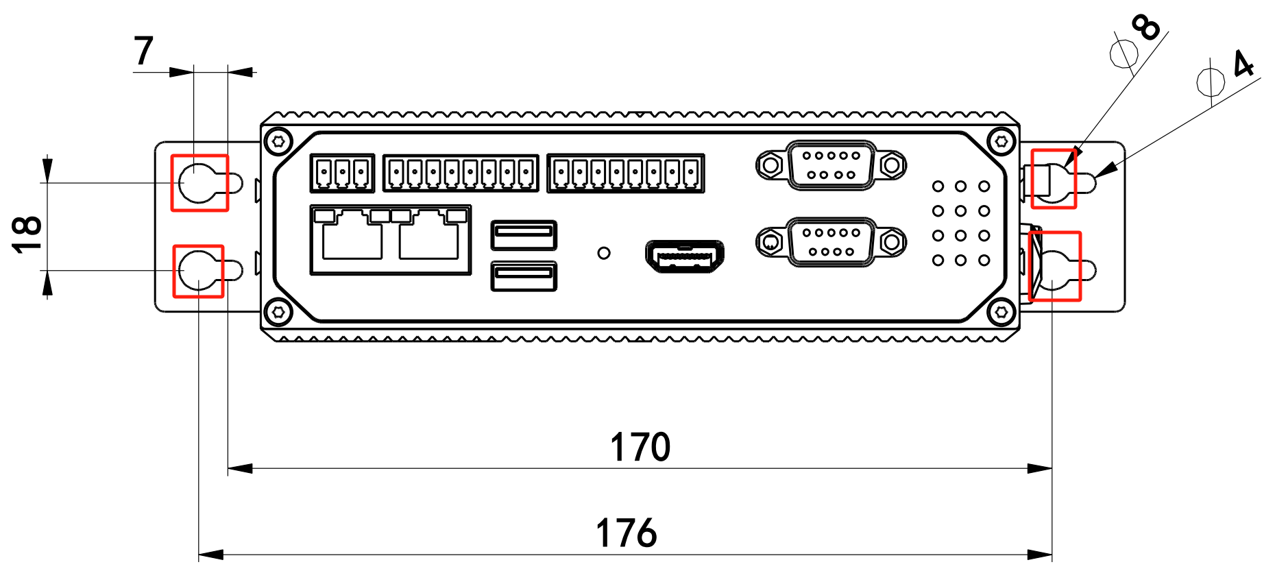 Step 2: After the wall mounted installation kit is successfully installed on the EC942 panel, use 4 M3 and 2 M6 screws to fix the EC942 to the wall or cabinet.