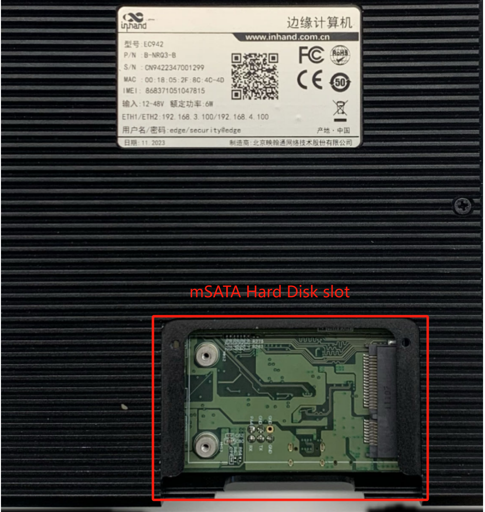EC942 supports mSATA hard drives, which are not equipped by default at the factory. If users have high-capacity storage needs and need to purchase mSATA hard drives themselves, they can also consult InHand for mSATA purchasing.