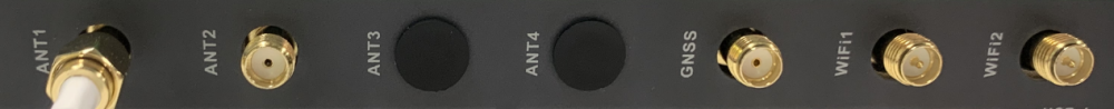 The product model shown below is EC954-FQ58-B, which supports 2 cellular antennas, 2 WIFI antennas and 1 GNSS antenna. Screw the required antennas into the corresponding SMA antenna connector to complete the antenna installation, as shown in ANT1.