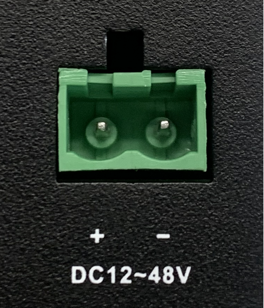 The EC954 supports 12 to 48 VDC power supply. After removing the factory supplied power adapter from the accessory box, insert the adapter terminals into the DC port of the EC954 and connect the power adapter. When the PWR power indicator lights up, it means that the device has been properly powered up.