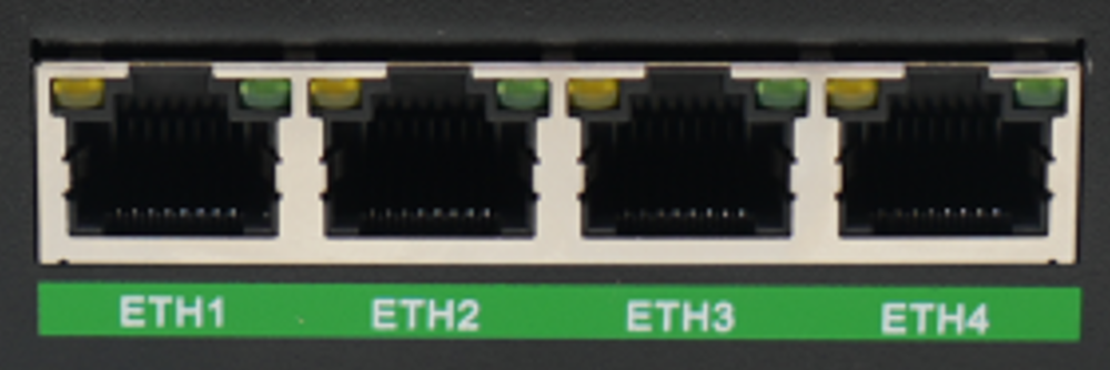 Insert one end of the cable into any of the EC954's network ports as shown in the figure below, and the other end into the computer's network port, and set the computer's IP address to the same network segment as the device interface address