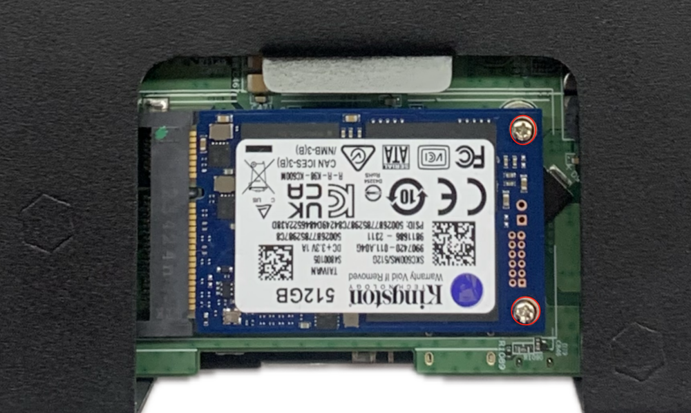 Step 2: Align the drive with the slot, push it to the right and snap it into place; remove the screws (M2) to secure the right side of the drive.