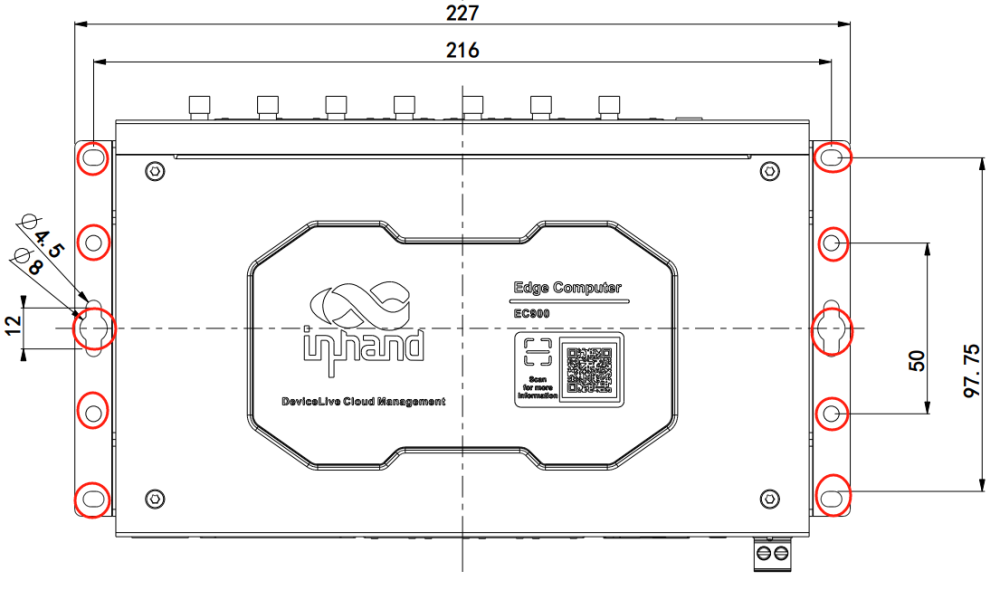 Step 1: Secure the wall mounting kit to the lower panel of the EC954 using the screws