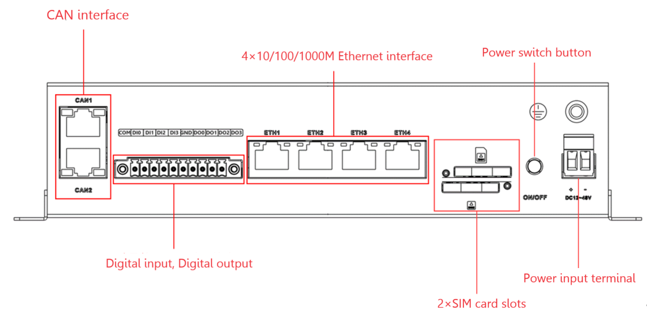 The EC954 has a 2-way CAN bus interface that supports the CAN 2.0A/B standard. CAN2 is compatible with CAN FD up to 5Mbps.