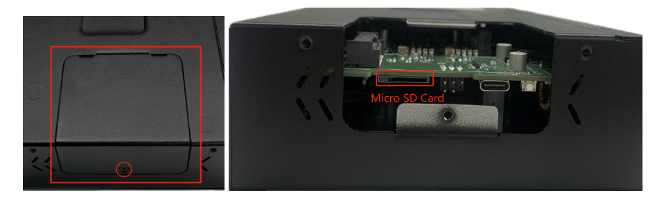 To install a Micro SD card, remove the protective case. Install the Micro SD card into the SD card slot located on the left panel of the EC954.