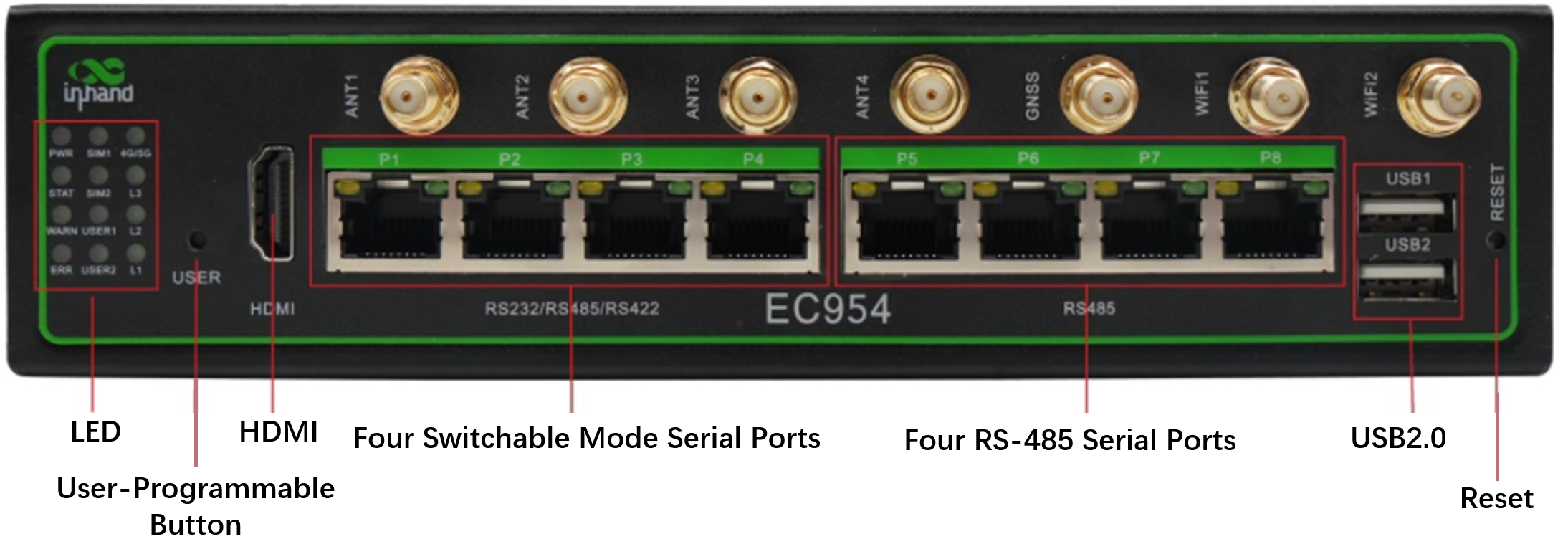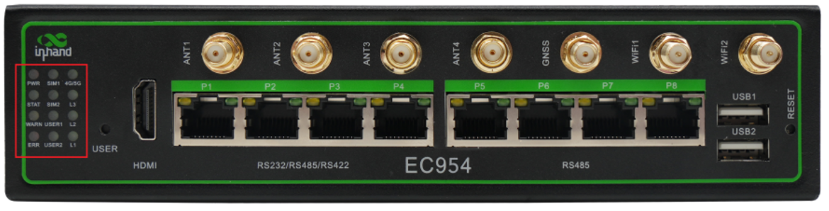 EC954 has 12 LED lights that respectively indicate the power supply and system operation status.