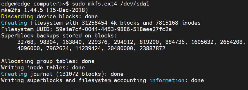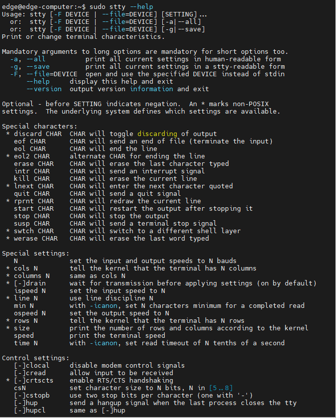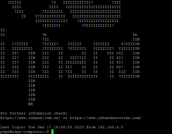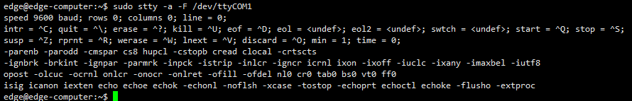 When the interface displays the terminal prompt `edge@edge-computer:~$`, indicating that shell commands can be entered, the connection is successful.