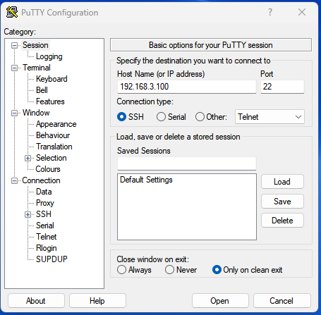 Click on the link http://www.chiark.greenend.org.uk/ ~Sgtatham/putty/download.html, download PuTTY (free software), and establish the connection with the edge computer EC900 in the way of SSH command in the Windows environment. The following figure is an example of using SSH connection: