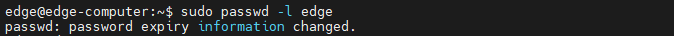 Use the passwd command to lock the default user account and prevent edge users from logging in