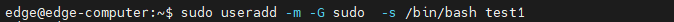 You can use the useradd and userdel commands to create and delete user accounts. Please make sure to use these commands on the main interface to set the relevant access permissions for this account. Here is an example of how to create test1 in the sudo group (the default login environment for test1 users is bash, and their home directory is/home/test1)