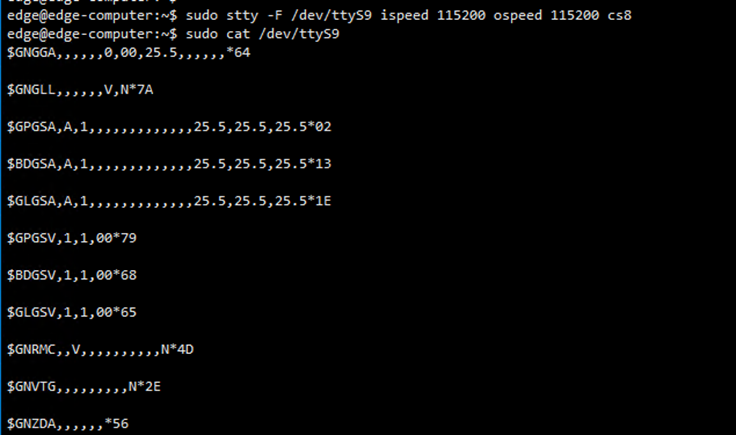 2. Type the gnss command to directly output parsed information such as time, longitude, and latitude