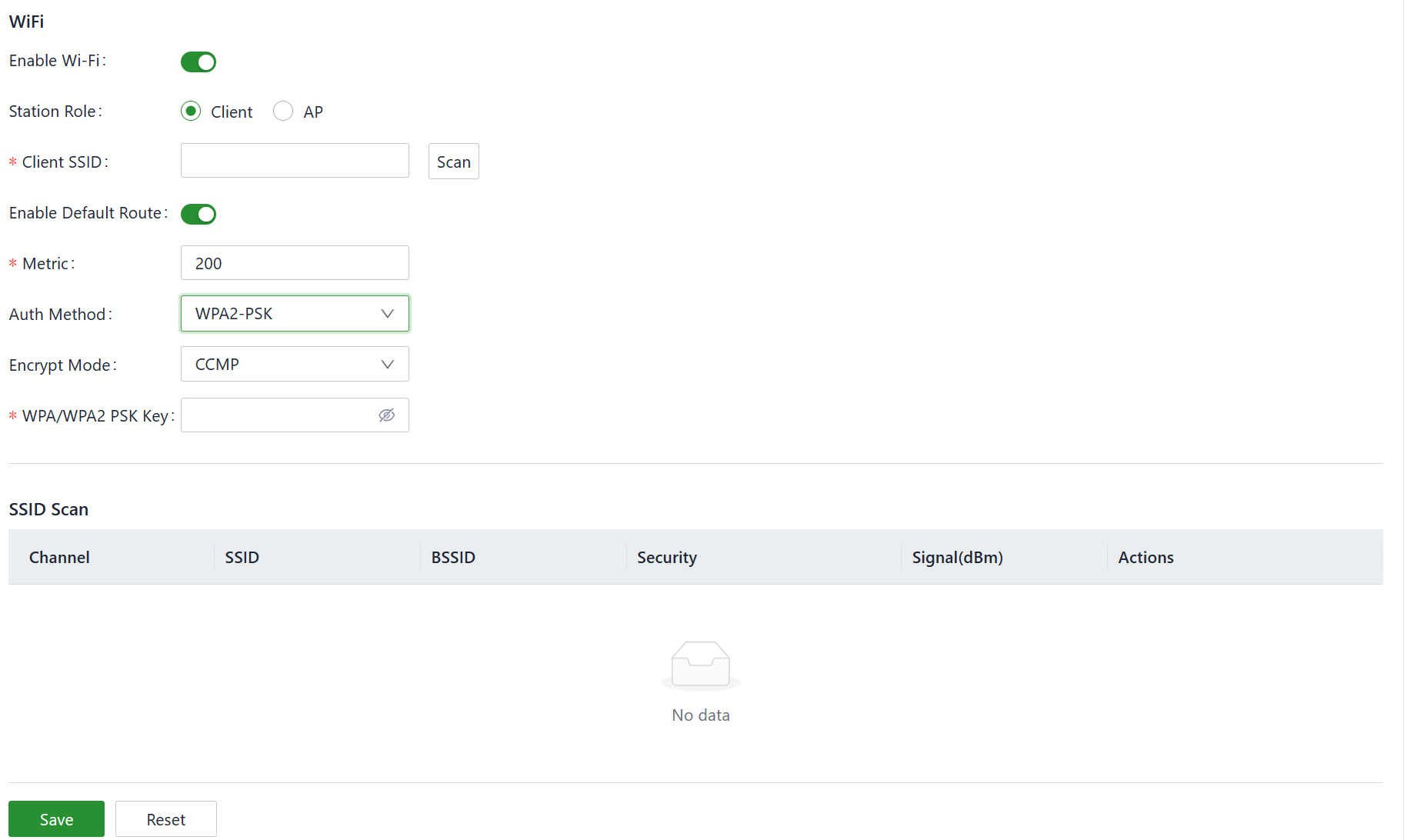 Metric: The metric value of the default routing for cellular ports. When default routing is configured for cellular, Wi Fi, and Ethernet ports, the metric with the smallest value takes effect.