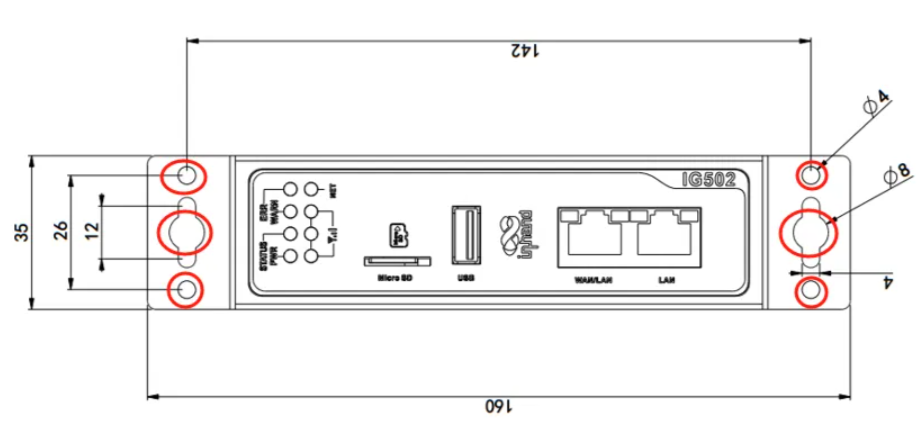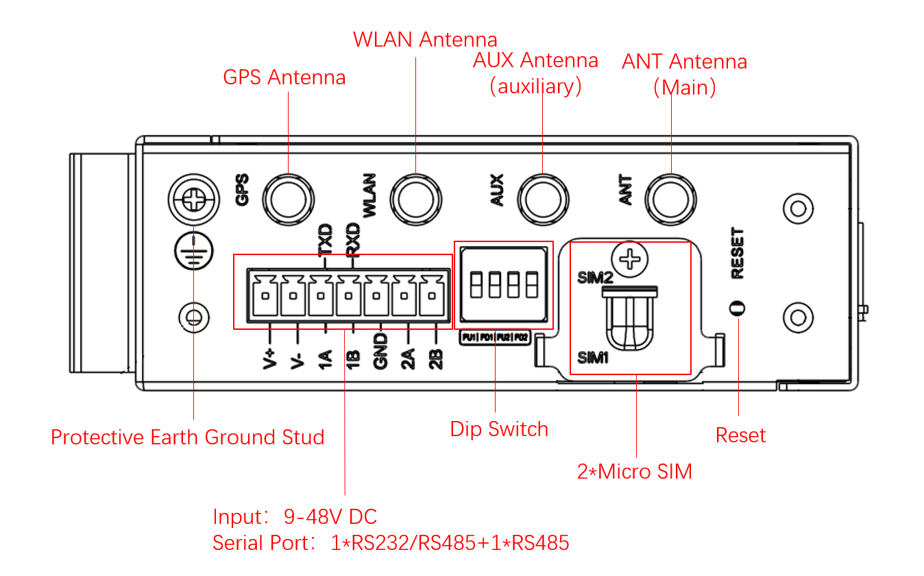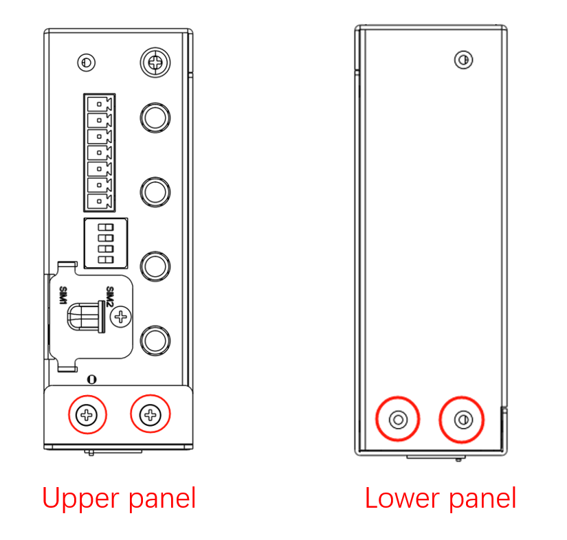 The IG502 is equipped with two Micro SIM card holders for cellular communication, located on the upper panel. The SIM card installation does not support hot-plugging and needs to be operated when the power is off.